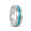 This modern black flat band Ceramic ring with a dazzling abalone inlay next to classy Koa Wood, brings outer space, down to you. Sublime.